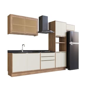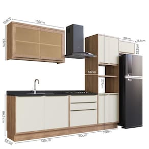 Itens Inclusos: 1 Balcão 120cm, 1 Balcão 80cm, 1 Torre Quente 70cm, 1 Aéreo 80cm, 1 Aéreo 120cm e 1 Manual de Montagem.