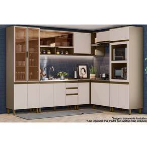Cozinha Completa Connect 10 Peças (3 Armários + 2 Paneleiros + 3 Balcões + 2 Complementos) C6P07 Duna/Cristal - Henn