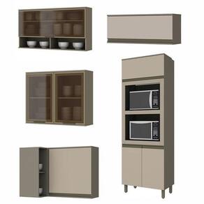 Cozinha Completa de Canto 9 Peças Connect com Aéreo Vidro Basculante - Móveis Henn