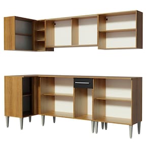Buscando uma solução completa e com ótimo aproveitamento dos espaços? Confira a Cozinha Emilly Play de Canto Reto da Madesa. São três balcões, três armários aéreos e uma adega acoplada, perfeitos para organizar os utensílios, louças e eletros. Além disso, todos os módulos são separados, possibilitando a montagem conforme a necessidade do seu ambiente.