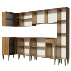 A Cozinha Emilly Space de Canto Reto da Madesa é fabricada com itens de qualidade superior, como puxadores com detalhe em alumínio e corrediças e dobradiças metálicas resistentes. Contempla três balcões, três armários aéreos, uma adega acoplada e um paneleiro, todos com ótimo aproveitamento dos espaços. Assim, fica mais fácil organizar os utensílios, louças e eletros.