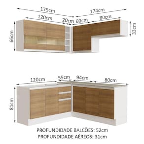 O acabamento da estrutura é branco e as portas e frentes são no padrão amadeirado Rustic. É feito em Pintura Poliéster com 7 camadas que protegem o móvel dos efeitos do álcool da água e do calor.