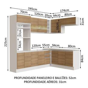 - 52 cm nos módulos inferiores e 31 cm nos aéreos