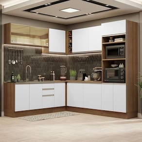 Esta Cozinha Completa de Canto da linha Glamy vai deixar sua casa mais moderna e elegante, com toda a qualidade dos móveis Madesa.