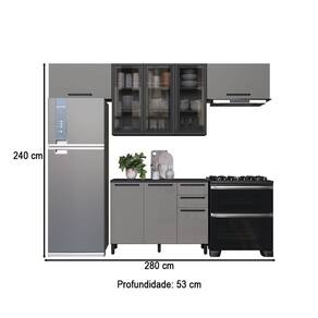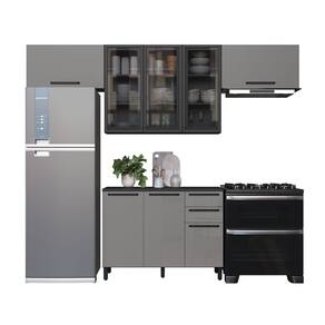 O(a) Cozinha Completa Diamante 6 Portas 3 Gavetas com Vidro Cinza/Titanio - Indékes é produzido em MDP na escala de brilho Acetinado, e possui um grau de dificuldade de montagem: Médio.