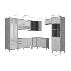 Cozinha Completa Eloise 8 Peças (3Aéreos+3Balcões+1Cristaleira+1TorreQuente) C8P88 Cinamomo/Off White - MGM