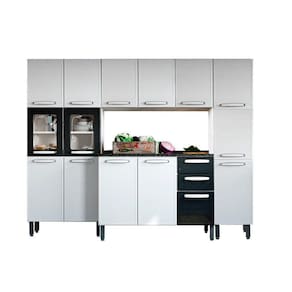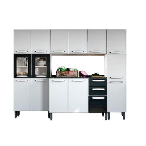 Cozinha Completa Evidence 4 Peças (1 Armário + 1 Balcão + 2 Paneleiros) C4p53 Branco/preto