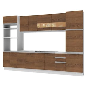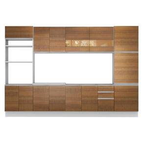 - Uma coluna de 70 cm com nichos para forno e microondas, duas portas batentes e uma porta basculante;