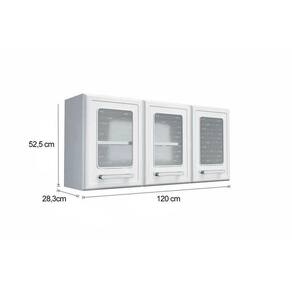 Armário Aéreo p/ Cozinha Gourmet 7009 3 Portas c/ Vidro 120cm Branco - Bertolini