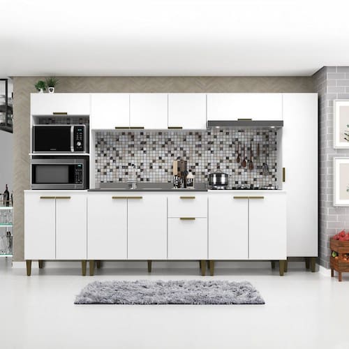 O(a) Cozinha Completa Iara 13 Portas 1 Gaveta Branco - Jcarvalho é produzido em MDP na escala de brilho Fosco, e possui um grau de dificuldade de montagem: Médio.