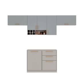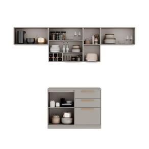 Seu acabamento em madeira Fendi/Gris traz um toque sofisticado e moderno, enquanto os detalhes em vidro e puxadores em alumínio com ABS completam o visual premium do ambiente. Principais características: Estrutura em MDF 15mm com pintura UV: resistente, durável e fácil de limpar.