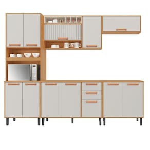 Destaques do produto: 5 peças bem distribuídas, garantindo amplo espaço para armazenar utensílios, alimentos e eletrodomésticos. Inclusão de forno, tornando a cozinha ainda mais prática e versátil. Medidas: Perfeita para diversos tamanhos de ambientes, com design inteligente que aproveita o espaço. Acabamento de alta qualidade, com detalhes resistentes que proporcionam durabilidade e estilo.