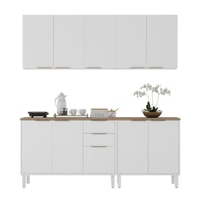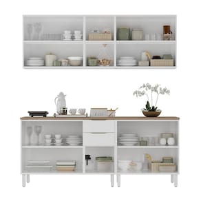 Composta por 4 peças, essa cozinha oferece uma excelente organização para os utensílios do dia a dia, além de um acabamento de alta qualidade que garante durabilidade e resistência. O seu design clean na cor branca proporciona um toque de sofisticação, adaptando-se facilmente a diferentes estilos de decoração.