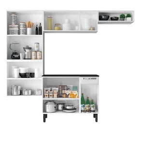 Amplo Espaço de Armazenamento: Múltiplas portas e gavetas que facilitam a organização dos utensílios e mantimentos.