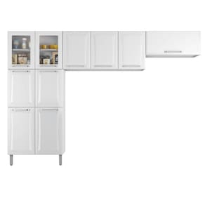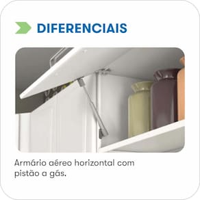 Composta por 3 peças (paneleiro, armário aéreo e armário aéreo de geladeira), a cozinha possui 10 portas, otimizando o espaço e garantindo organização para todos os utensílios. Seu formato completo, com 280cm de largura, é ideal para quem busca uma solução inteligente para ambientes planejados, com encaixe perfeito em diversos tipos de cozinhas.