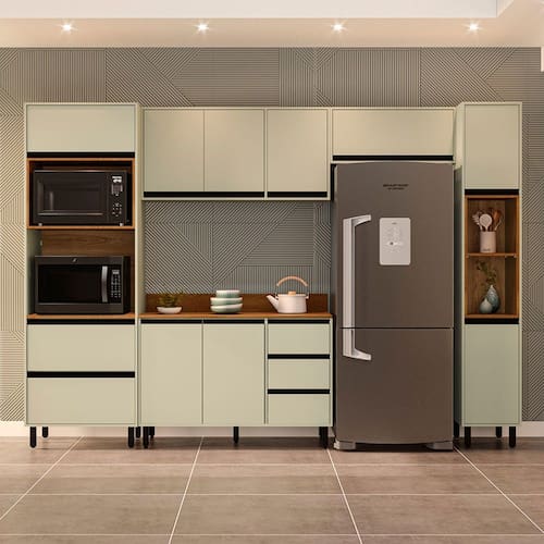 O(a) Cozinha Completa Koya 10 Portas 4 Gavetas 40250043 Verde Oliva - Politorno é produzido em MDP na escala de brilho Semi-Fosco, e possui um grau de dificuldade de montagem: Médio.