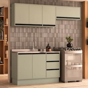O(a) Cozinha Completa Koya 6 Portas 3 Gavetas 40250033 Verde Oliva - Politorno é produzido em MDP na escala de brilho Semi-Fosco, e possui um grau de dificuldade de montagem: Médio.