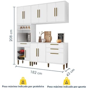 - Balcão: 80,5 (A) x 119,5 (L) x 43 (P) cm;