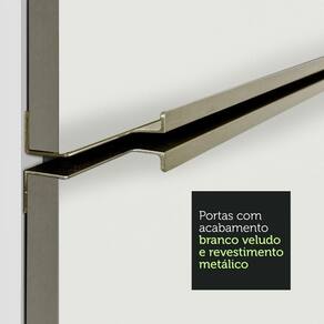 Um dos principais diferenciais desta versão são as portas e frentes das gavetas, que possuem revestimento metálico nas bordas e acabamento em Branco Veludo, uma pintura especial e sofisticada, com toque liso e aveludado.
