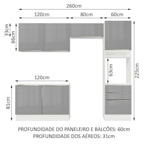 - 60 Cm de profundidade na torre e no balcão e 31 cm nos aéreos