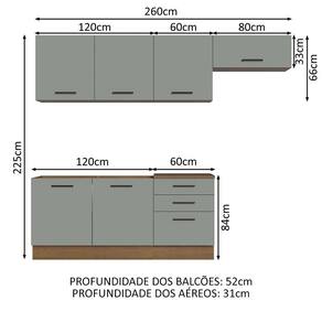 - 52 cm de profundidade nos balcões e 31 cm nos aéreos