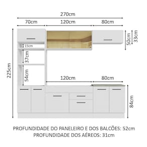 - 52 cm de profundidade nos módulos inferiores e 31 cm nos aéreos