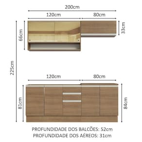 - 52 cm de profundidade nos módulos inferiores e 31 cm nos aéreos