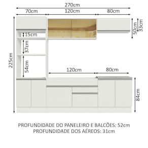 - 52 cm de profundidade nos módulos inferiores e 31 cm nos aéreos