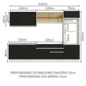 - 52 cm nos módulos inferiores e 31 cm nos aéreos