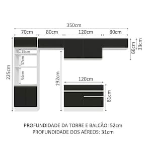 - 52 cm nos módulos inferiores e 31 cm nos aéreos