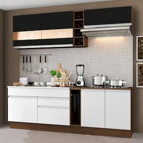 Esta cozinha pode ser complementada pelos módulos avulsos da linha Glamy da Madesa.