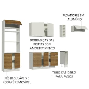 Tem espaço pra tudo neste modelo: forno, micro-ondas, garrafas, louças, eletros, panos e o que mais você imaginar. É a escolha perfeita para deixar a cozinha muito mais organizada e funcional.