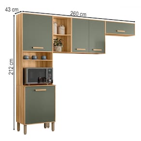 O(a) Cozinha Completa Maria Flor 5 Portas Freijó/Verde - Nicioli é produzido em MDP na escala de brilho Fosco, e possui um grau de dificuldade de montagem: Médio.