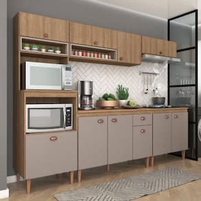 O(a) Cozinha Completa Marti 10 Portas 1 Gaveta Marrom/Marrom Claro - Fellicci é produzido em MDP na escala de brilho Fosco, e possui um grau de dificuldade de montagem: Médio.