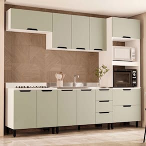 O(a) Cozinha Completa Meena 10 Portas 4 Gavetas 40250055 Branco/Verde Oliva - Politorno é produzido em MDF e MDP na escala de brilho Semi-Fosco, e possui um grau de dificuldade de montagem: Médio.