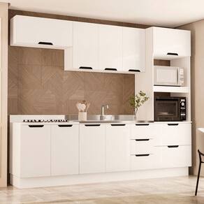 O(a) Cozinha Completa Meena 10 Portas 4 Gavetas 40250061 Branco - Politorno é produzido em MDF e MDP na escala de brilho Semi-Fosco, e possui um grau de dificuldade de montagem: Médio.