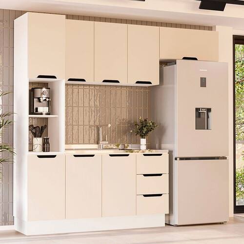 O(a) Cozinha Completa Meena 8 Portas 3 Gavetas 40250060 Branco/Creme - Politorno é produzido em MDF e MDP na escala de brilho Semi-Fosco, e possui um grau de dificuldade de montagem: Médio.