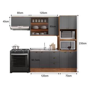 Especificações da composição: Medidas totais: Largura: 270 | Altura: 230 | Profundidade: 51 Peso total: 141 Matéria Prima: BP/MDF Acessórios: Puxadores metálicos Sistema de abertura: Dobradiças com amortecimento | Corrediças telescópicas