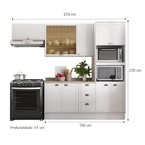 A Cozinha Bella Maya foi feita para trazer praticidade e funcionalidade ao seu dia a dia. Esta composição foi desenvolvida pensando em atender às necessidades de todos usuários, unindo praticidade com estilo. Seu design inspirado nas cozinhas clássicas estilo americano possui detalhes usinados nas frentes, deixando qualquer ambiente mais bonito.Com acabamento em MDF e BP, dobradiças com amortecimento e puxadores metálicos em fortmato ponto e concha, na cor ouro velho, proporciona um acabamento de alta qualidade.