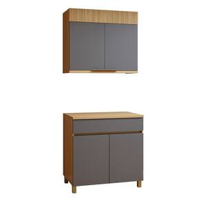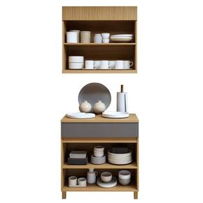 Cozinha Completa Modulada 2 Peças 4 Portas 1 Gaveta 100% Mdf Realeza Premium Carvalho/Titânio - Cinza