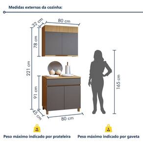 Medida de cada item (A x L x P): Balcão 1 gaveta: 91x80x45; Aéreo 2 portas: 78x80x32