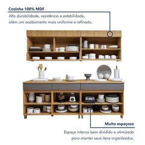 Pode ser utilizado em outro ambiente? Claro, com criatividade, ele pode ser utilizado em vários ambientes. Acabamento da Prateleira: Impressão Escala de Brilho da Prateleira: Semi-Brilho Acabamento da Gaveta: Impressão Escala de Brilho da Gaveta: Semi-Brilho Acabamento da Porta: Impressão Escala de Brilho da Porta: Semi-Brilho Material do Puxador da Porta: Alumínio Acabamento dos Pés: Pintura Acompanha Tampo: Sim Altura dos Pés: 10 cm Altura Máxima dos Pés: 10.0000 Ambiente Principal: Cozinha Balcão Suporta Pia: Não codigo_ean: 7900288293244 Complexidade da Montagem: Alta: deve ser montado por um montador especializado Cor: Carvalho/Titânio Cor do Produto: Carvalho/Titânio Escala de Brilho: Semi-Brilho Espessura do Tampo: 25 mm Gaveta com Chave: Não Itens Inclusos: 1 Cozinha Completa, Kit Ferragens e Manual de Montagem Linha ou Coleção: Realeza Premium Manual de Montagem e Instalação: https://product-hub-prd.madeiramadeira.com.br/347738632/documents/7efef387-7b35-4c9d-838d-ac193839053b334128573217655409005613.pdf Marca: Nesher Móveis Material da Corrediça: Metálica Material da Dobradiça/Corrediça da Porta: Metálica Material da Gaveta: MDF Material da Porta: MDF Material da Prateleira: MDF Material do Tampo: MDF Material dos Pés: ABS Medida de cada item (A x L x P): Aéreo 2 portas: 78x80x32;aéreo 1 porta: 78x120x32;Balcão 1 gaveta: 91x80x45;balcao 2 gavetas: 91x120x45. modular: Sim Necessita Montagem: Sim O Balcão Acompanha Pia: Não Origem do Produto: Nacional Pés Reguláveis: Sim Peso: 126,26 kg Peso Máximo por Gaveta: 5 kg Peso Máximo por Prateleira: 15 kg Possui Pés: 09 Possui Portas: Sim Possui Prateleiras: Sim Possui recorte para Cooktop: Não Possui Rodízio: Não Possui Vidro: Sim Produto Montado: Sim Recomendações de Uso, Manutenção e Limpeza: Utilizar pano macio levemente umedecido e na sequencia pano macio seco Sapatas Niveladoras: Sim Sistema de Montagem: Parafusos e Cavilhas Tipo de Corrediça da Gaveta: Metálica Telescópica Tipo de Dobradiça da Porta: 35 mm Tipo de Puxador da Gaveta: Embutido Tipo de Puxador da Porta: Externo Marca: Não Informado