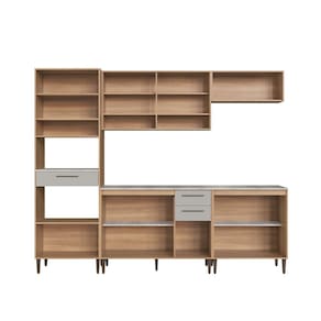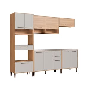 A Cozinha Modulada Jade Delmarco 5 peças, com Torre Quente, é uma cozinha que soma elegância com praticidade, presentando um design moderno e funcional, contemporânea, com linhas retas e combinação de cores neutras. Produzida toda em chapa em MDP de 15cm, revestido com perfect, traz excelente acabamento e qualidade. Possui dobradiças com amortecimento, corrediças telescópicas, puxadores em alumínio com boa ergonomia, pés com niveladores de piso, altos e visíveis nos móveis, facilitando a limpeza. torre quente com 2 nichos embutidos para micro-ondas/forno elétrico, prateleiras abertas decorativas. Esses itens de qualidade superior conferem durabilidade e maior vida útil ao móvel. É o produto perfeito para abrilhantar seu espaço da cozinha.