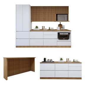Cozinha Completa Modulada 8 Peças 10 Portas 10 Gavetas com Rodapé Norten Branco/Marrom - Branco | Marrom
