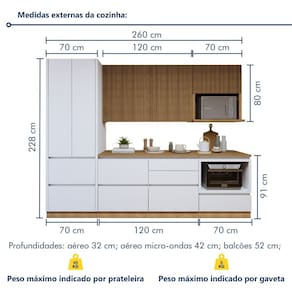 Medida de cada item (A x L x P): Paneleiro 2 Portas 2 Gavetas 70 Cm A: 228 Cm P: 52 Cm L: 70 Cmarmário Aéreo 2 Portas 120 Cm A: 80 Cm P: 32 Cm L: 120 Cm Arm. Micro-ondas 1 Porta Basc. 70 Cm A: 80 Cm P: 42 Cm L: 70 Cm 2 - Balcão 1 Porta 4 Gavetas 120 Cm A: 91 Cm P: 52 Cm L: 120 Cm Balcão 1 Porta 1 Gaveta 80 Cm A: 91 Cm P: 52 Cm L: 80 Cm Balcão Forno 1 Gaveta 70 Cm A: 91 Cm P: 52 Cm L: 70 Cm Painel De Ilha Canelado 200 Cm A: 100 Cm P: 35,5 Cm L: 200 Cm