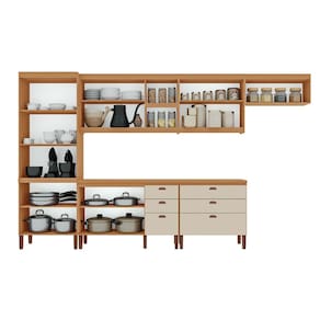 Apresentamos a Cozinha Ágata New! A cozinha Ágata New destaca-se pela excelente divisão interna, que maximiza a organização e funcionalidade. A pintura touch confere um acabamento moderno e elegante. Os puxadores ponto e concha na cor cobre adicionam um toque sofisticado ao design. As corrediças telescópicas e o divisor de talheres garantem praticidade e eficiência no uso diário. Não perca tempo e adquira já a sua!