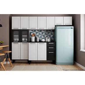 Cozinha Completa Múltipla 4 Peças (2 Armários + 1 Balcão + 1 Paneleiro) C4P85 Branco/Preto - Bertolini