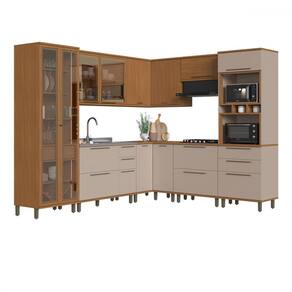 O(a) Cozinha Completa Munique 14 Portas 7 Gavetas com Vidro 6154.195 Freijó/Camurça - Indékes é produzido em MDP na escala de brilho Fosco, e possui um grau de dificuldade de montagem: Médio.