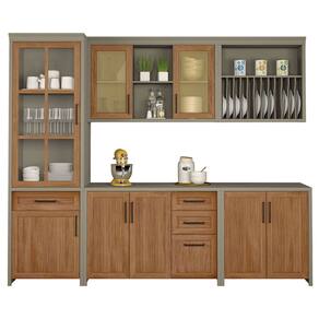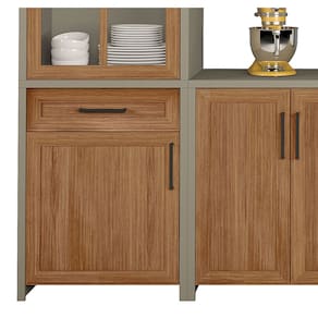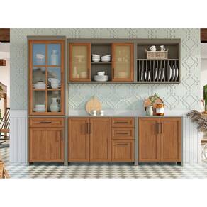 O Armário de Cozinha 8 Portas Camponesa - Nesher, contempla um desing provençal e rústico, irá proporcionar praticidade e elegância ao seu ambiente. Possui, um paneleiro cristaleira ideal para expor suas louças e taças, também conta com dois armários aéreos, um deles com detalhe de rattan em suas portas, promovendo sofisticação ao seu espaço e amplo espaço de armazenamento, já o outro com nicho e porta prato. Também conta com dois balcões, com um tampo amplo e um ótimo espaço interno para guardar seus utensílios.