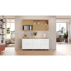 Para complementar, o Armário Aéreo para Micro-ondas Nesher Marquesa de 80cm oferece porta articulada com pistão a gás, moldura superior robusta e nicho decorativo aberto, perfeito para unir funcionalidade e estilo. Com estrutura reforçada e fita de borda em polipropileno, o móvel é resistente à umidade e fácil de montar.